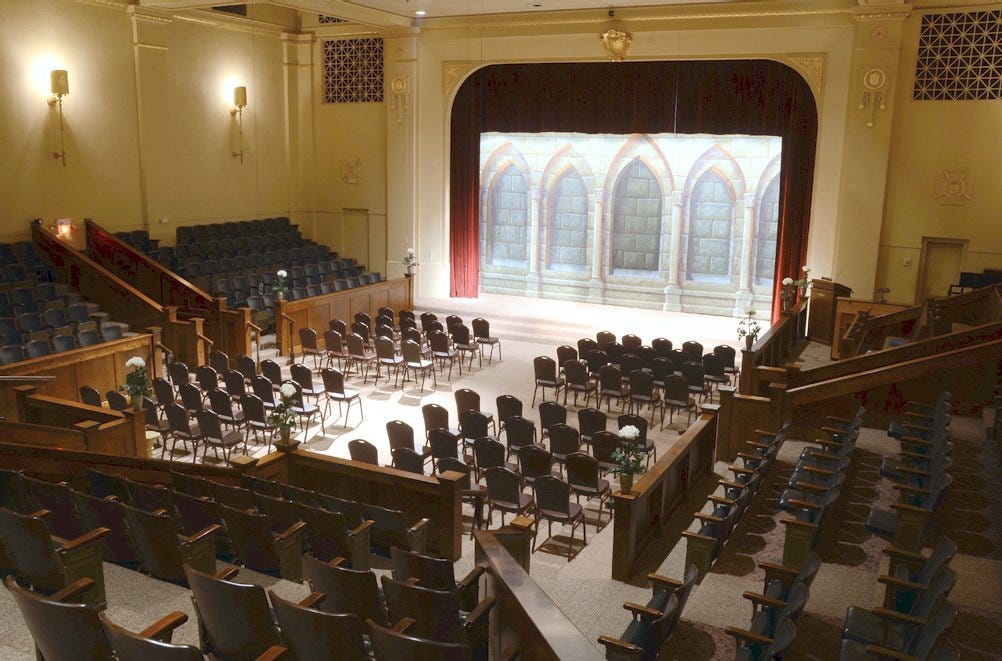 Below, the auditorium (I understand they now call it the ballroom). Imagine it candlelit with the band in the round down there where those chairs are. Oh, and electric candles, Fire Marshal Bill.