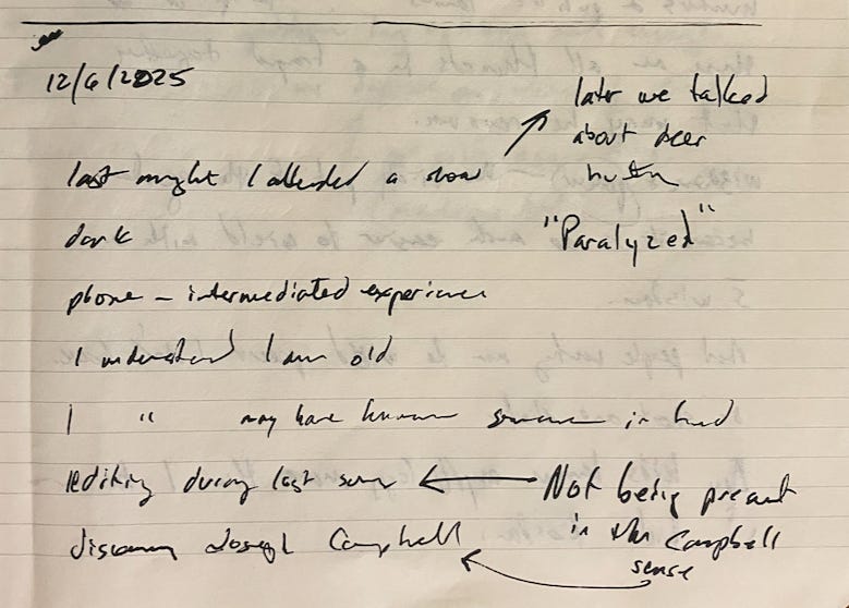 In this episode I wonder if humans getting back together again might be the secret to a new bliss, even though I wouldn’t call it that. I also explore the balance between the mystery of life and the mystery of what’s under the refrigerator. Scroll down for photos and marginalia related to this episode.
